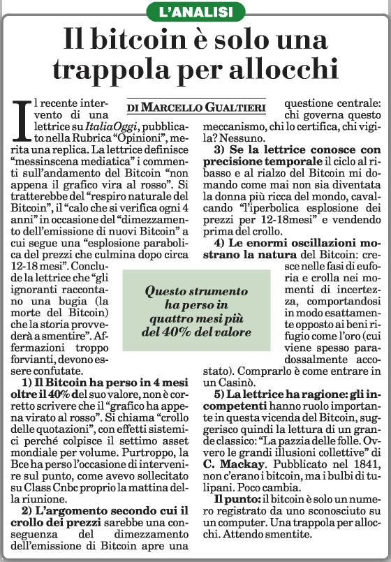 Il bitcoin è solo una trappola per allocchi